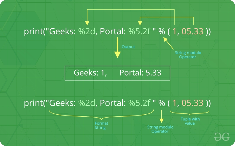 для виконання форматування рядка. Тому його часто називають рядковим оператором модуля (або іноді навіть модулем).